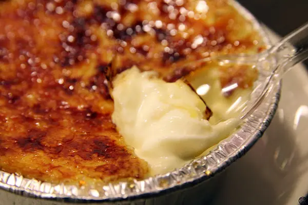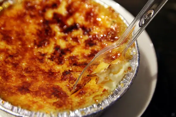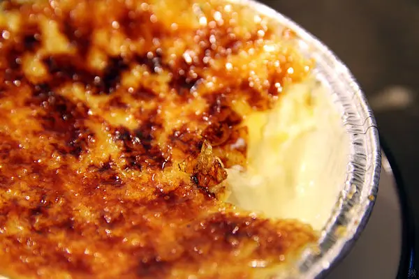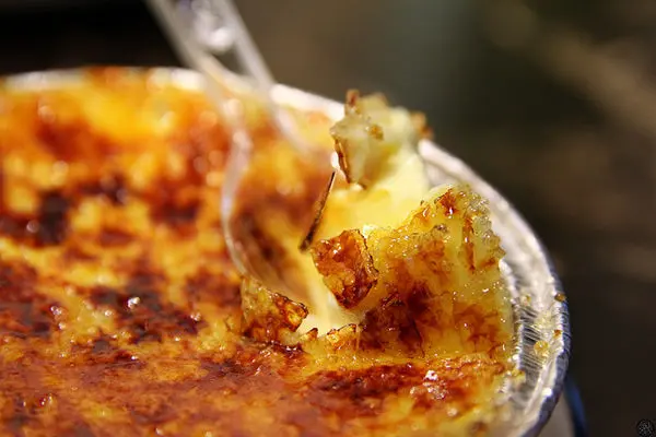 表面一層閃亮亮的焦糖拍了許久才甘願用湯匙戳破它。