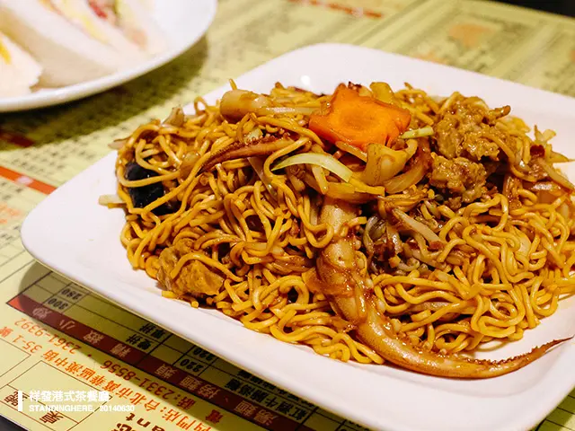 這也幾乎是茶餐廳的經典款,以份量來説, 至少是用了一包半的公仔麵, 一個人吃可能會太飽!(我們都是點了分著吃的啦!)