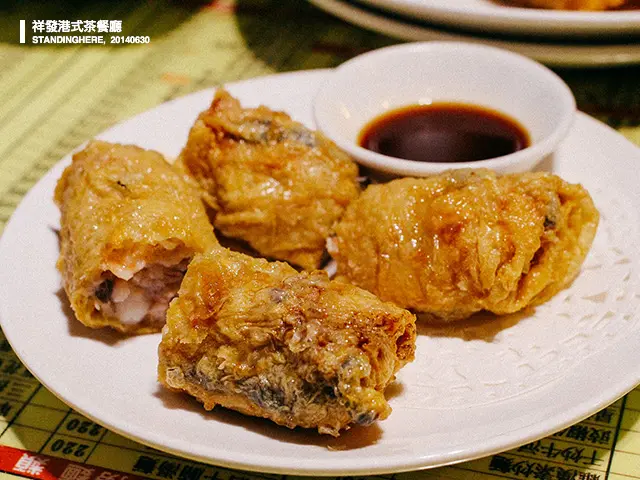 茶餐廳的港式點心比較少, 所以只選了這也算是必吃的腐皮捲...個頭也不小, 每一口都吃得蝦仁, 紮實彈牙,不過稍為油了一點, 用盤上的墊紙吸一下油, 口感會好一些。