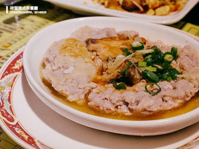 我們看了看菜單, 又加點了這鹹魚蒸肉餅!結果鹹魚還真有夠鹹, 一上桌就忍不住掩鼻: 夭壽, 那 a 加鹹~~幸好吃起來沒有聞的那麼鹹,肉餅其實就是豬絞肉, 只是加了些粉讓它們結在一塊, 很彈牙!但內心還是很渴望要是現在能有一碗白飯就好了,它實在是不能點來單吃的食物啊哈哈哈