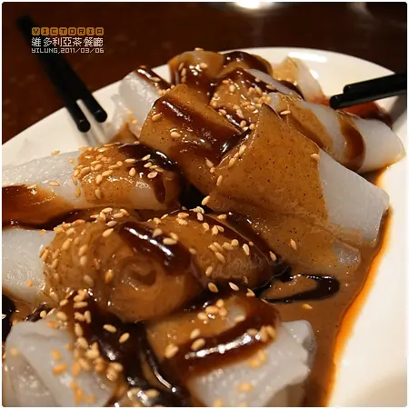 第一個送來就是上圖的豬腸粉(80nt), 想說咖哩魚丸在咖哩吃過, 那就試試豬腸粉。豬腸粉是經典的香港小食, 由米漿蒸過之後變成膜, 捲好之後像豬腸一般,故而稱之...但腸粉本身沒有味道, 醬料就顯得十分重要,吃起來鹹鹹甜甜, 而芝麻的味道非常濃郁, 有種在吃麻醬麵的感覺...