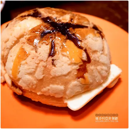 結果他吃不下我接收了一半。雖然我吃的時候已經有點冷掉, 沒有那種"冰火交錯"的感覺...但還是好好吃耶, 他們的菠蘿麵包烤得都比一般要酥脆, 牛油化在麵包裡一樣不減美味。