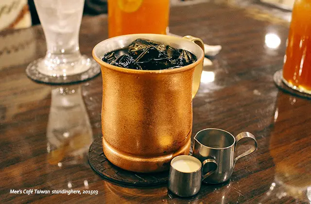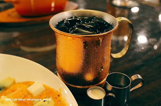 冰咖啡用的是銅杯, 整個很復古很有質感,