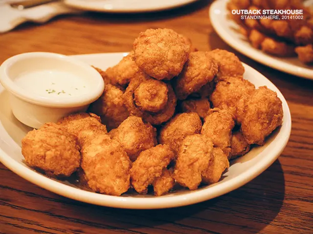 吃法是直接用手一根根拔起來吃, 外酥內軟, 單吃就很美味,搭配 outback 辣根醬又有不同口感...只不過它必須趁熱吃就是了, 冷掉吃就會覺得膩口了,還有若是人不多千萬別隨便挑戰,因為份量真的很大, 我們六個人到最後都有點拿它沒輒了~