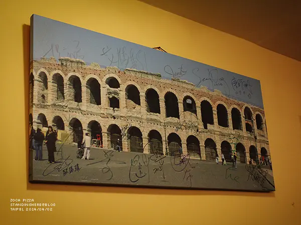 也許正因為道地, zoca pizza 的生意非常好, 幾乎一整晚都是客滿的狀態。牆上掛了一幅有很多簽名的照片, 感覺也是不少藝人來過~