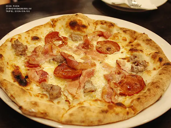 zoca pizza 位於安和路二段與臨江街口,但其實也就在通化夜市旁邊,捷運坐到信義安和站, 3 號出口旁的通安街直走至臨江街, 拐個彎就看到了!而會選這家是因為前同事剛去吃,在臉書上貼出一大堆披薩的照片,看得大家口水直流, 便直接選定這家!說真的這幾年來窯烤披薩十分盛行, 但我好像都沒有找過這類以披薩為主的餐廳聚餐呢~~
