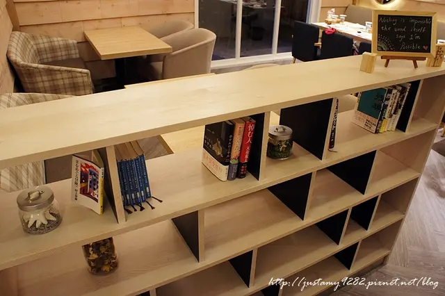 一旁還設計了一個書櫃~ 隨意擺放幾本書籍、雜誌就十分舒心