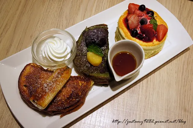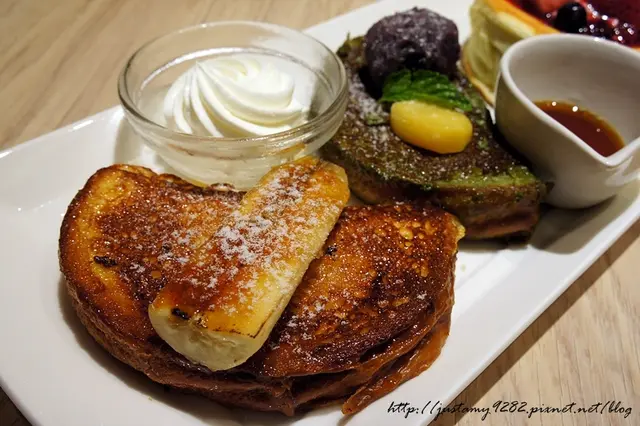 囊括了香蕉法式吐司、抹茶法式吐司以及莓果厚燒鬆餅