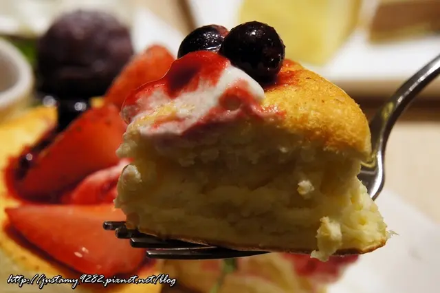 單單搭配上方裝飾的鮮奶油、藍莓以及店家自製の莓果果醬~ 就十分好吃了!!!