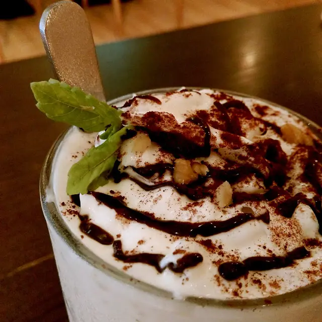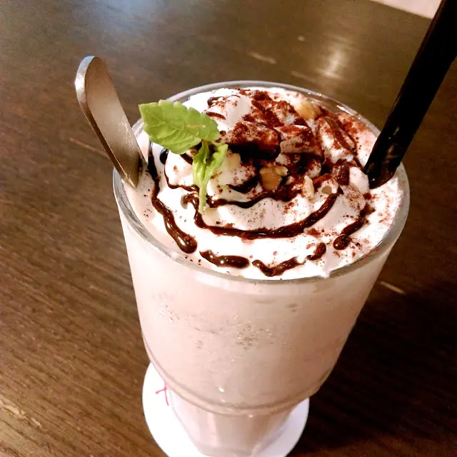 用整塊布朗尼蛋糕+牛奶+冰淇淋打的奶昔