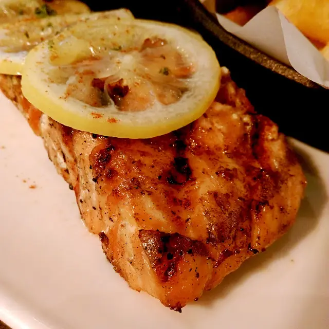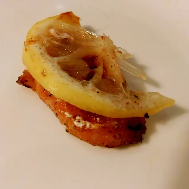 其實鮭魚單吃就很有味道 但加了萊姆片後