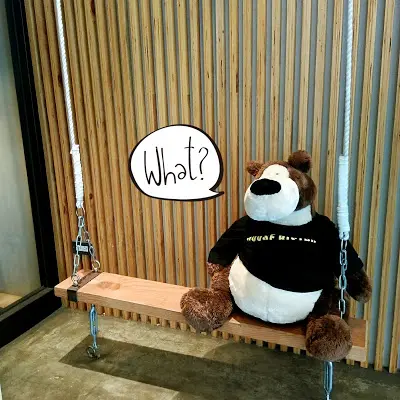 門外有一隻熊在盪鞦韆雖然好適廚坊才剛開十個多月