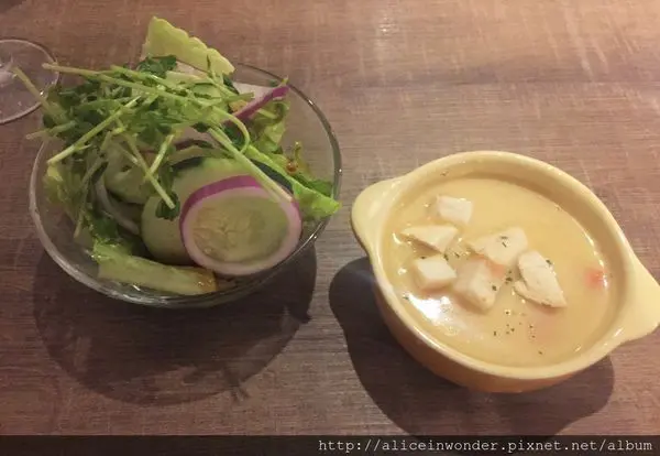 就很基本的沙拉和湯品(馬鈴薯濃湯),