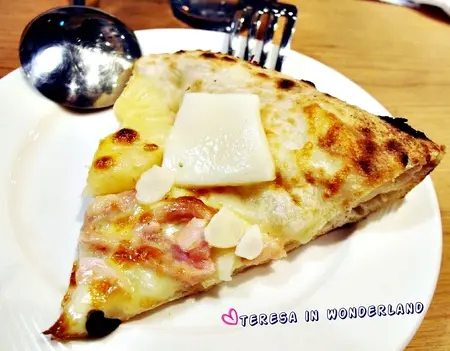 燻雞經過窯燒後,煙燻味更為誘人~搭上酸酸甜甜的鳳梨,口感為之清爽!好開胃的一個Pizza xDDD