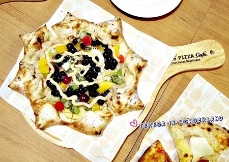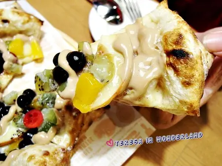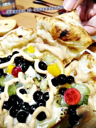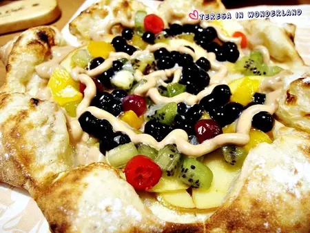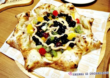 但看著上頭的食材,大夥也不禁發愣...這些甜甜的東西,到底能與Pizza擦出怎樣的火花
