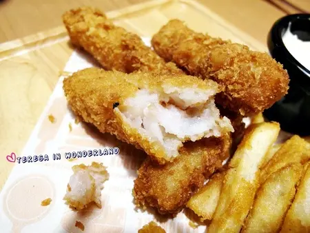 外皮炸至金黃色的魴魚條,同樣沒有過厚的粉衣,裏頭的魚肉非常細嫩!沾著塔塔醬一起食用,尤其美味~
