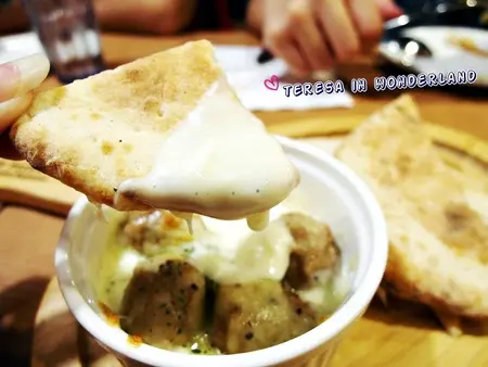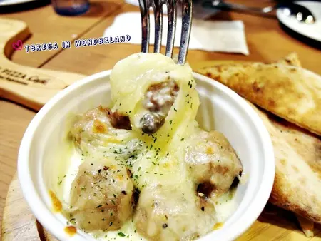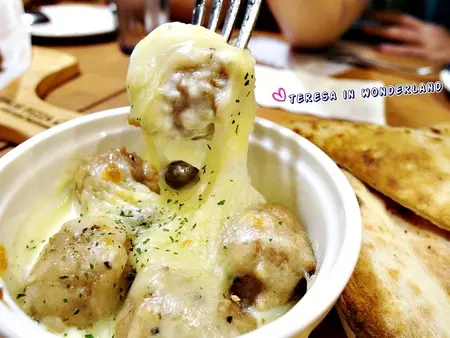 店員一端上桌,就提醒 奶油燉焗肉丸要趁熱快吃