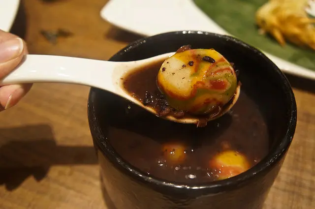 內餡是香甜的芝麻 搭配溫暖的紫米紅豆湯