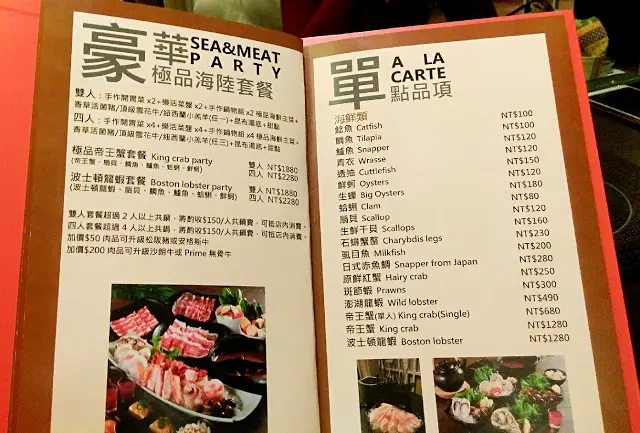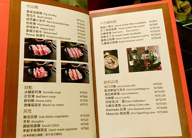 其中包括了菜盤、手作鍋物、主餐、湯底、甜點