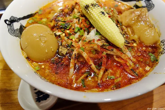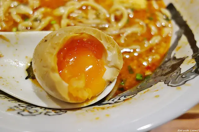 這天點了基本款的辣麻味噌拉麵+味玉(溏心蛋)的版本,辣度和麻度因第一次來保守些先選普通就好。