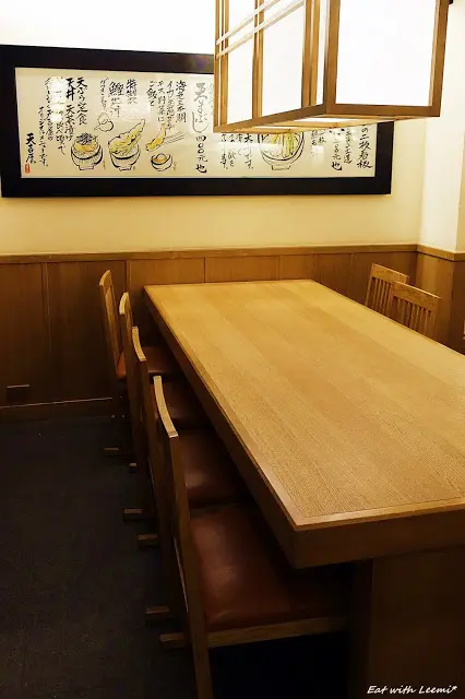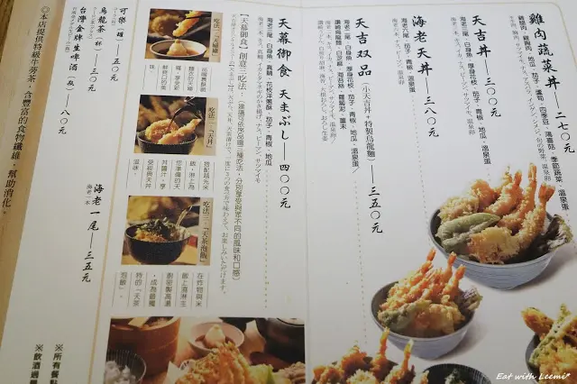 有一件事情是我個人比較不喜歡的,就是桌面空間有點太狹小了,本來桌上就有小菜和立牌這類物品,加上入座後送來的茶壺茶杯,最後如果要再擺上餐點更顯擁擠,今天是一份丼飯加一份御食剛好擺滿,如果兩個人都點天幕御食可以想見用餐時會有多不方便。