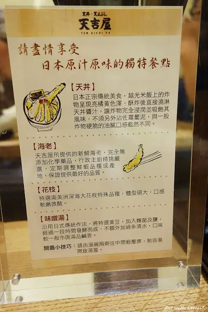 天吉屋料理給我的感覺比預期中還好,重點的米飯與炸物都有不錯的水準,但是定價部分就略貴了些,尤其是天幕御食的價位,會讓人覺得餐點內容應該要更豐盛一點,如果只是想吃米飯配炸物的料理我想下次應該不會優先考慮天吉屋,雖然主打的炸蝦不錯但與其他店家的差距還不到明顯,加上因是屬特定料理的專門店能選擇的菜單種類相當有限,各方面條件綜合起來的吸引力不足,所以暫時就只能擱置在不怎麼糟糕但無緣再訪的名單內了。