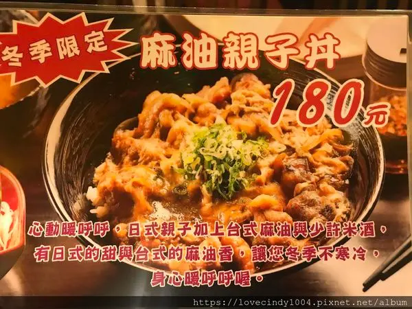 快入冬了,所以新丼還推出應景的麻油親子丼!