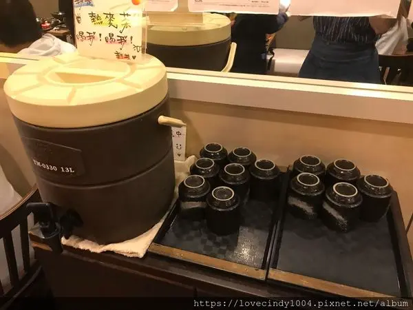 新丼提供熱熱的麥茶,提供給沒有點套餐,只有單點丼飯的朋友,也能有飲料可以搭配!