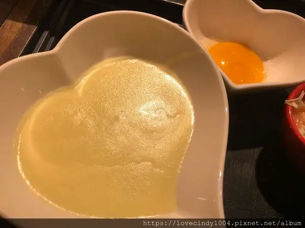 最後再將生蛋黃倒在最上面!!要倒的像照片上一樣美,十分考驗技術呀!!