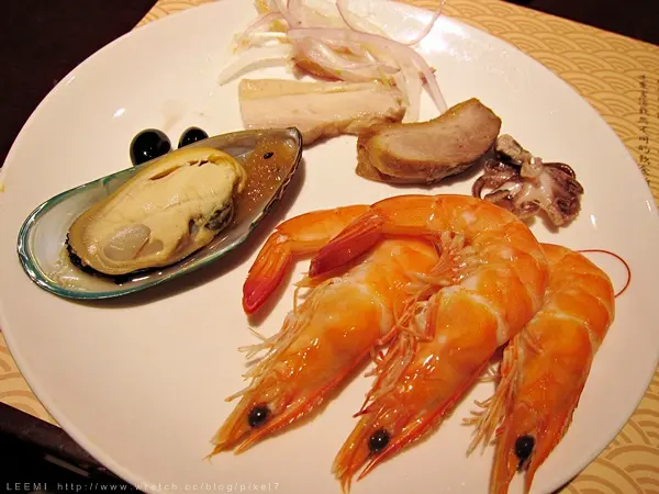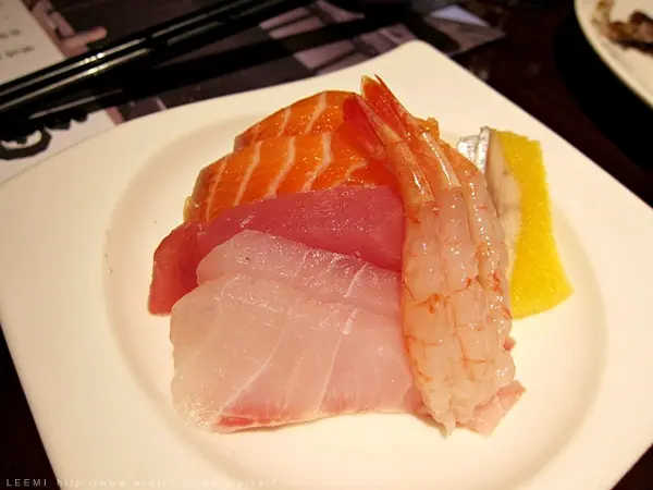 生魚片類像廚師點餐後會依照種類需求切片,推薦一下當天負責生魚片這區塊的廚師態度很親切,今天生魚片還不錯,新鮮度還OK,可惜鮭魚稍嫌不夠肥嫩,甜蝦倒是不錯,甘甜沒腥味。