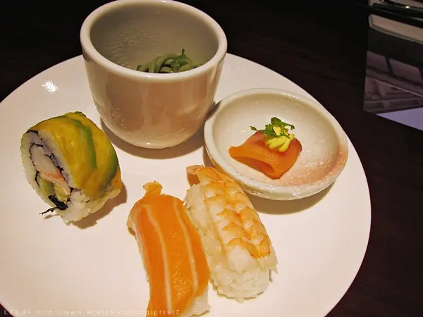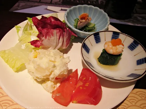 之後就開始取餐時間囉,既然是日本料理自助百匯,供應的品項當然不少,尤其前菜冷食種類五花八門,只端了其中幾樣試試味道。