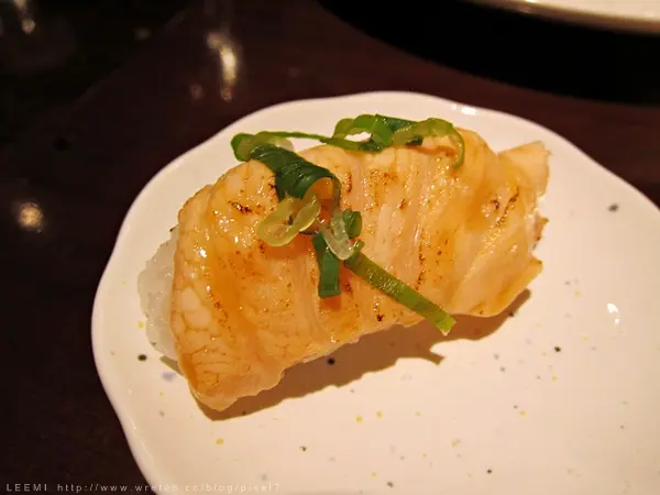 後來拿的炙燒鮭魚握壽司,還蠻軟嫩的,也不會有太重的焦味。