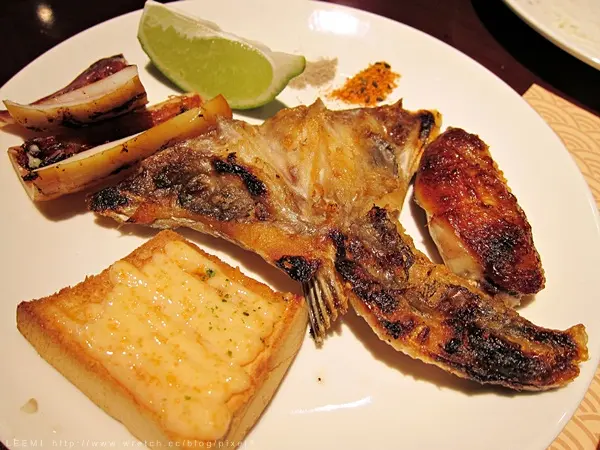 烤物只拿了其中幾樣,其中雞翅和花枝是亮點,雞翅軟嫩有汁還續了幾次,最雷的是淋上明太子美奶滋的烤土司,醬汁甜膩膩就算了吐司還烤的乾巴巴,不推。