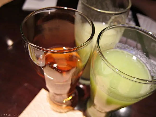 現打果汁與茶類,綜合果汁還不錯,稍微偏酸但不至於難以入喉。
