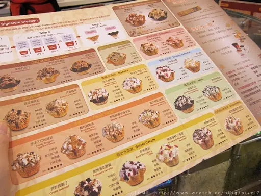 Cold Stone的冰淇淋個人覺得偏甜,但各種口味都有標出甜度供參考還算貼心,配料與冰淇淋口味也說明的相當清楚。