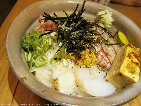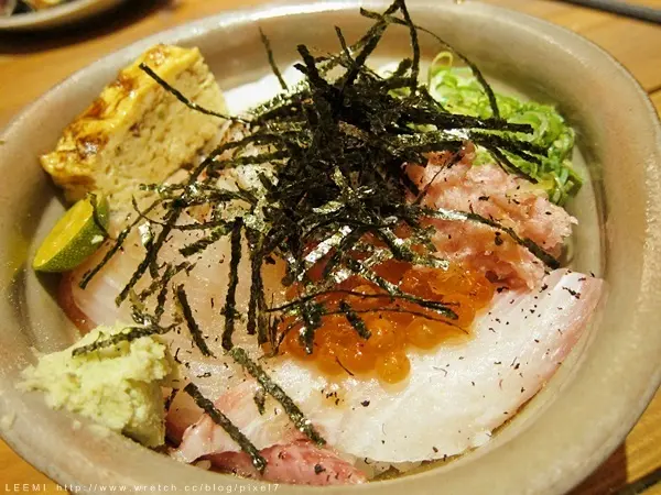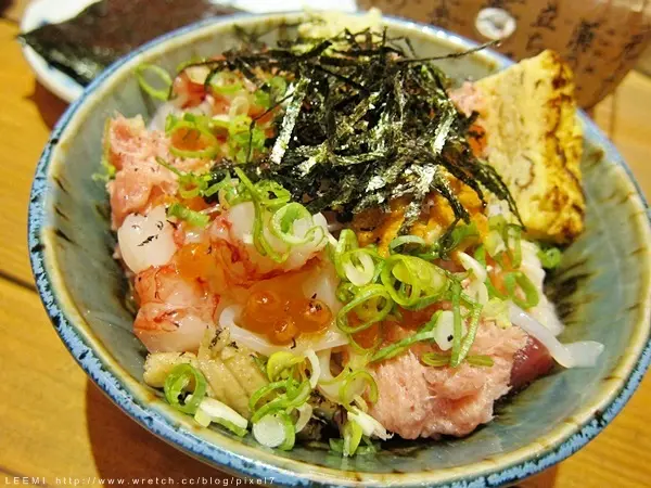 朋友對這碗丼的評價一般般,覺得大部分的魚料都是不會不新鮮以至於有腥味、但也沒到鮮甜味美的程度,友人印象比較深刻大概就是比目魚鰭邊肉,油脂豐足而口感柔軟。