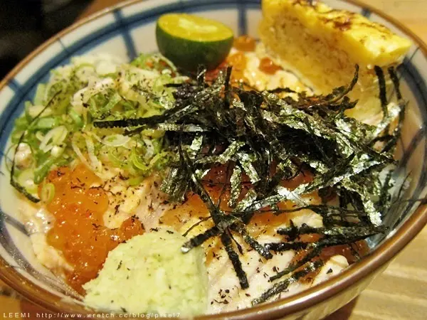 另外一位朋友點的鮭魚親子丼,鮭魚可以選擇生食或是炙燒,這碗的評價也是還可以。