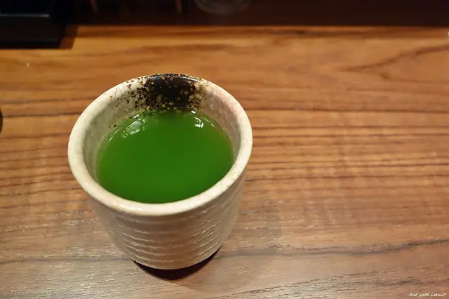 矢場味噌豬排在台灣的第一間店舖選在捷運東門站永康街商圈附近,我們趁著開幕初期兩度造訪,把有興趣的菜色都吃過了一回,兩層樓的店面生意不錯,初期大排長龍是常有的景象,如今在週末假日前往店內也是將近全滿,就座後先送來茶水,這裡供應的飲品不是熱茶,是比較少見的涼抹茶,味道稍淡些。