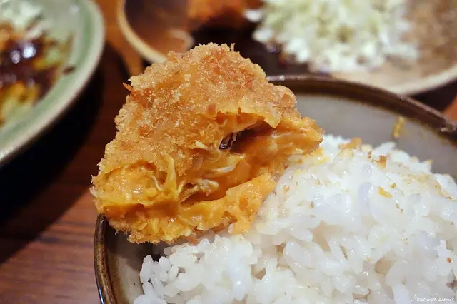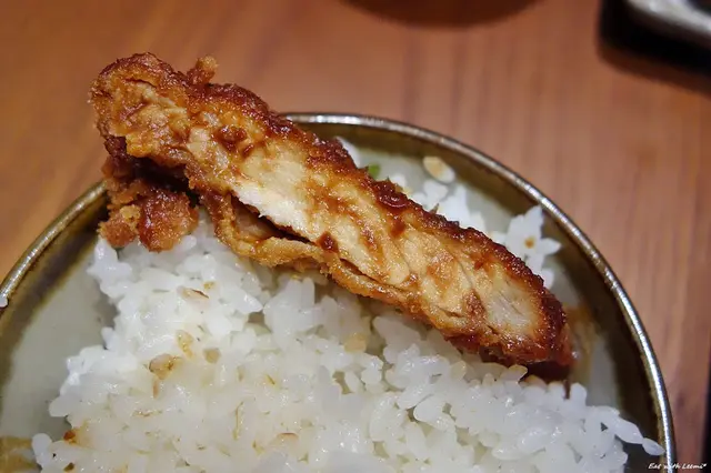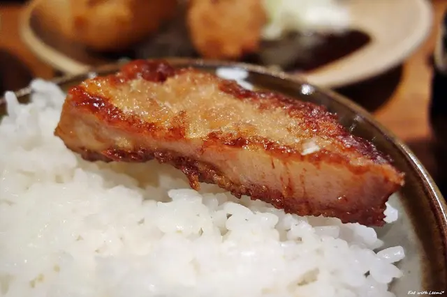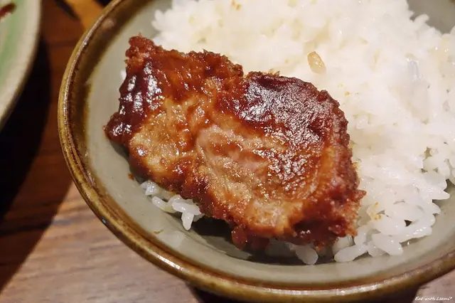 炸粉和醬汁一樣直接自日本進口,炸衣裹覆的程度還不錯,沒醬汁的部分亦不會刮口,只是這裡的豬排大多數都是淋上味噌醬吃,整體能維持酥脆的時間很短,對於習慣炸物要吃口感的人而言還是比較無趣吧,不過我覺得厚度適中的麵衣透入醬汁風味後吃起來更成一體,濃濃的甘鹹香會讓人忍不住多配一口白飯。