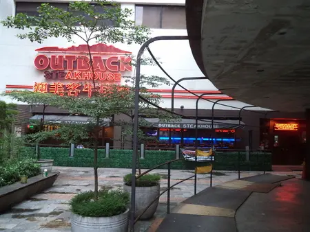 雖然是大白天,但大大的霓虹燈"澳美客"三個字真的很顯眼