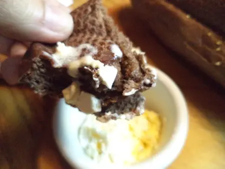 吃起來的口感實在綿密,每一口都很滿足,加上旁邊的奶油,微鹹微鹹的滋味和黑糖的甜混在一起,真的好吃極了