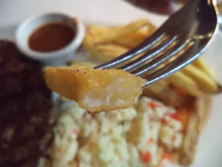 外酥內軟的牛排吃起來多汁有嚼勁,一點也不老,很剛好,而且沒有腥味,光是原味就很好吃了!!