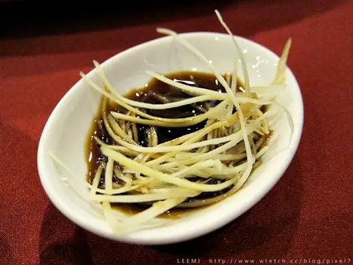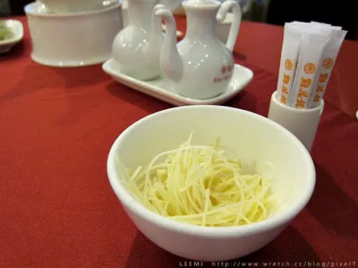 吃小籠包必備薑絲&烏醋,可以去點油膩。