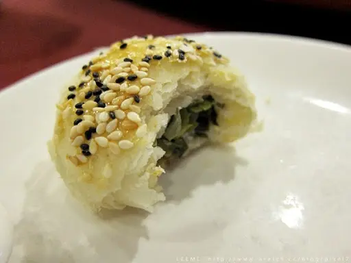 蟹殼黃其實就是小燒餅的一種,點水樓夾的是鹹的蔥餡,雖說叫酥軟蟹殼黃,但既然早涼了自然只剩軟沒有酥啦,冷的蟹殼黃能多好吃?只能說調味還可以無特別驚人之處。