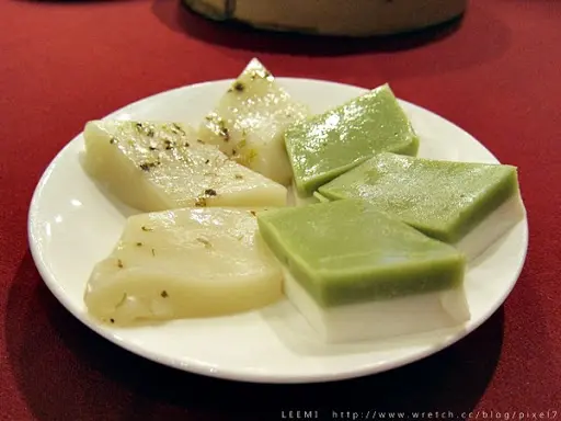 桂花拉糕黏筷不黏牙很妙,口感類似於麻糬,雪花糕則是比較接近凍,不過兩種口味都只能說普普.....