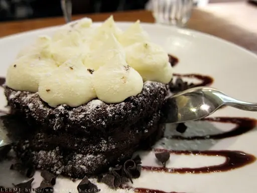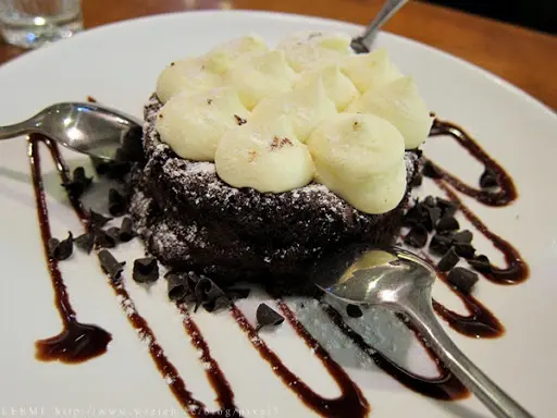 乳白色的部分不是奶油,而是二樓招牌的全美起司餡,將巧克力蛋糕切開裡面也內藏起司餡,起司的部分微酸清爽不會過甜,搭上濃郁的巧克力蛋糕,濃厚X清爽的雙重組合意外的搭配,微酸的起司成功化解了巧克力蛋糕易生膩的厚重感,份量不小適合2~3人一起分享。