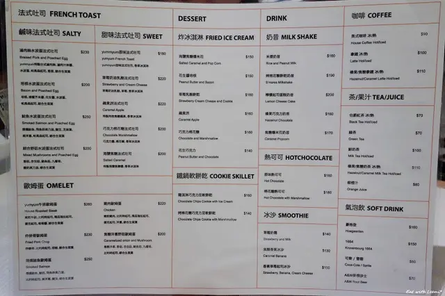 點餐過程不太順利,連續兩次點完送來的明細內容都有錯誤,而且在又過一陣子後店員才來告知說當日法式吐司已完售,問要不要換成別的餐點,但是我們所點的除了法式吐司之外其他菜色廚房已經開始做了故不可更改,這件事情自己是覺得不太合理,如果客人原本預想的餐點最佳選擇是A料理+C料理,剛好當天A料理短缺時,想退而求其次換成菜色內容重覆性較低的B料理+D料理卻是不行,而之所以不給修改的原因是食材有短缺的當下沒立刻告知客人,可能內外場之間的溝通還有改善空間。
