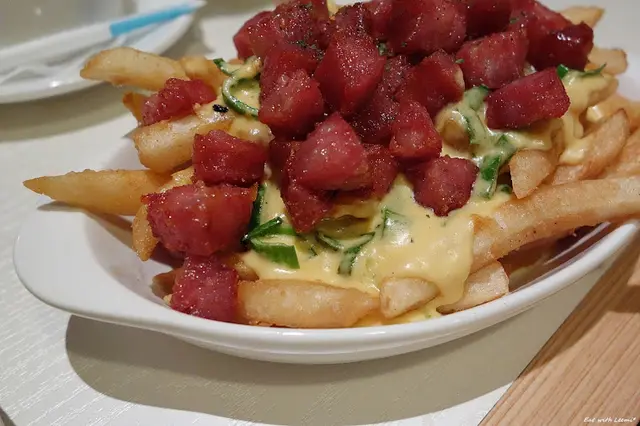 蒜苗香腸起司薯條 180元