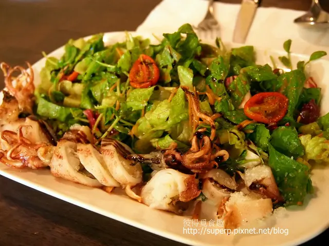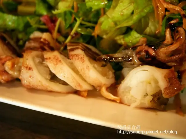 有卵小捲沙拉$260(小捲烤的酥脆,而且裡面的卵風味迷人,非常喜歡。跟沙拉和巴薩米克醋一起吃,清爽可口,大推!)
