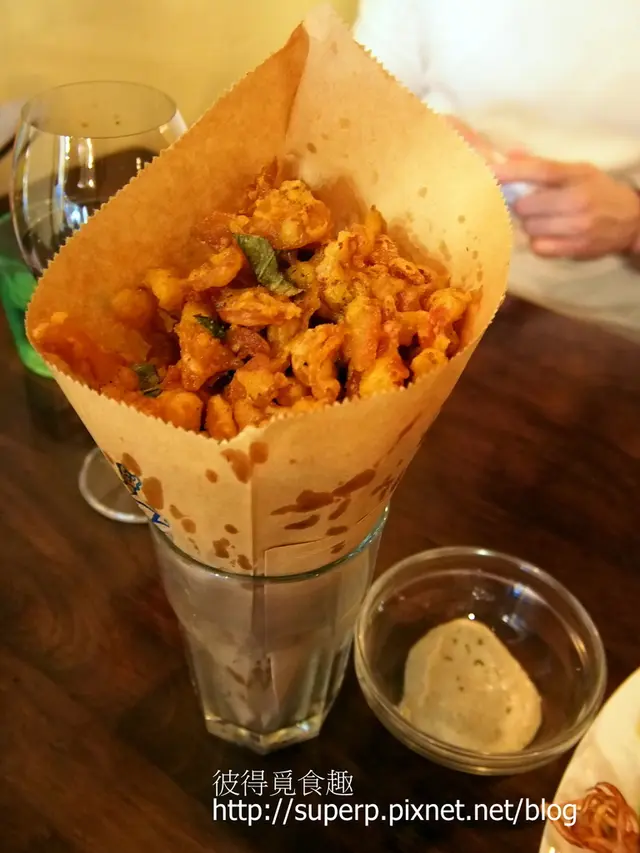 酥炸豬耳朵附酸豆美奶滋$210(第一次吃到用炸的豬耳朵,非常喜歡脆骨咬起來的口感。雖然稍微油膩,但搭配酸豆美奶滋就比較好一點。非常下酒,接近大推!)
